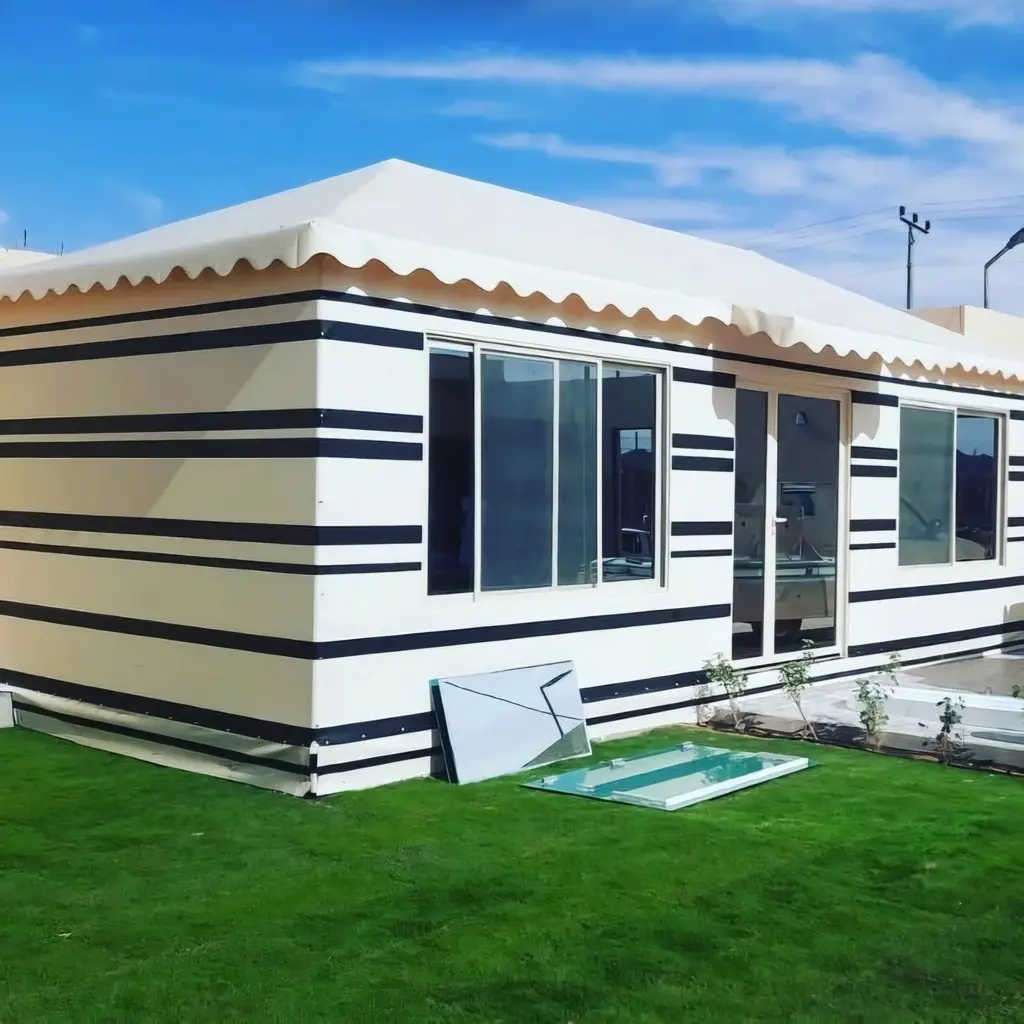 نحن متخصصون في تركيب بيوت شعر المدينة المنورة، حيث نقدم حلولاً معمارية متكاملة تجمع بين أصالة التصميم العربي والجودة الهندسية الفائقة. نبدع في تنفيذ الخيام العربية بأعلى مستويات الاحترافية، بدءًا من الأساسات القوية وحتى التشطيبات الداخلية الفاخرة، لتوفير مجالس ضيافة راقية وذات طابع مميز. يتميز كل بيت شعر نقوم بتركيبه بالمتانة العالية؛ حيث نعتمد على هياكل معدنية معالجة ومقاومة للتآكل لضمان ثبات الهيكل واستدامته لسنوات طويلة. كما نستخدم أقمشة بيوت شعر عازلة للحرارة والماء، مصممة خصيصاً لمقاومة الظروف المناخية القاسية في المدينة المنورة، موفرة بذلك عزل حراري ممتاز وحماية كاملة من أشعة الشمس القوية. سواء كان اختيارك لـبيت شعر ملكي فاخر بديكورات عصرية، أو بيت شعر تراثي يحافظ على الروح الأصيلة، فإن فريقنا يضمن الدقة في المقاسات والسرعة في التنفيذ، مما يجعلنا الخيار الأفضل لمن يبحث عن فخامة وجودة في خدمات تركيب بيوت الشعر في جميع أحياء المدينة المنورة.